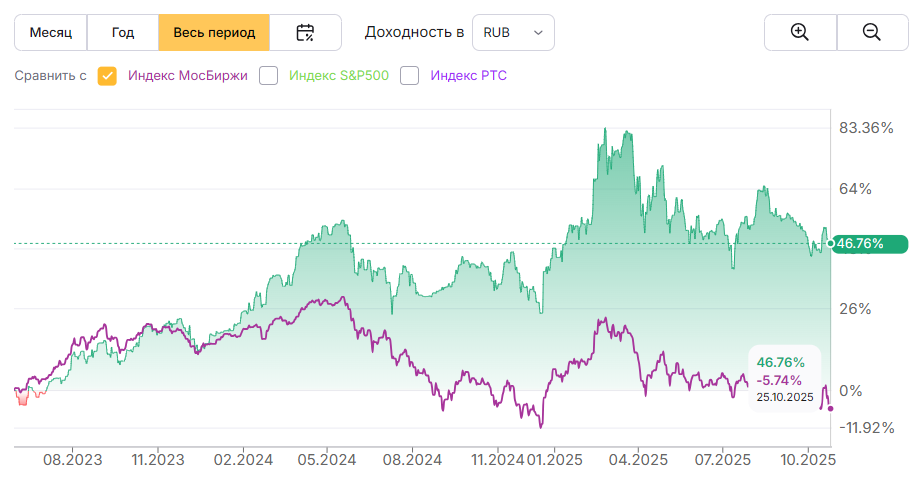 Доходность на графике отображена с учетом брокерских комиссий автора за совершение операций